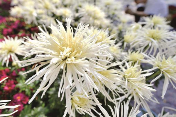菊花:菊花为秋季最常见的花卉植物之一,其花型秀美、花色明艳动人,并且自古就有秋季赏菊、饮酒的习俗。