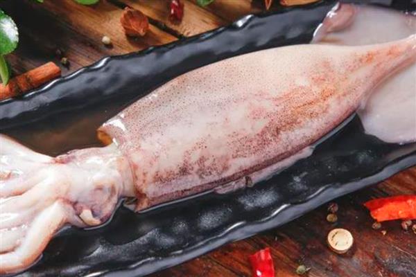鱿鱼:十腕目枪乌贼科,10条腕足,锥形外套膜,内壳薄,可在海中快速游动,也需煮熟后食用。