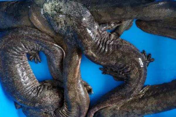 4、食物方面可以给娃娃鱼喂活饵,口感好且蛋白质丰富,并且娃娃鱼爱吃。