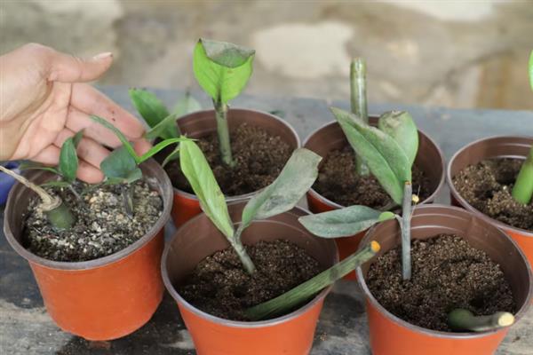(2)从金钱树摘取下来的块茎,需要涂抹硫磺粉、草木灰进行消毒处理,然后等待伤口自然愈合后,插入适合生长的土壤中就可以了,需要将温度控制在18℃左右,一周后放在充足光照处养殖。